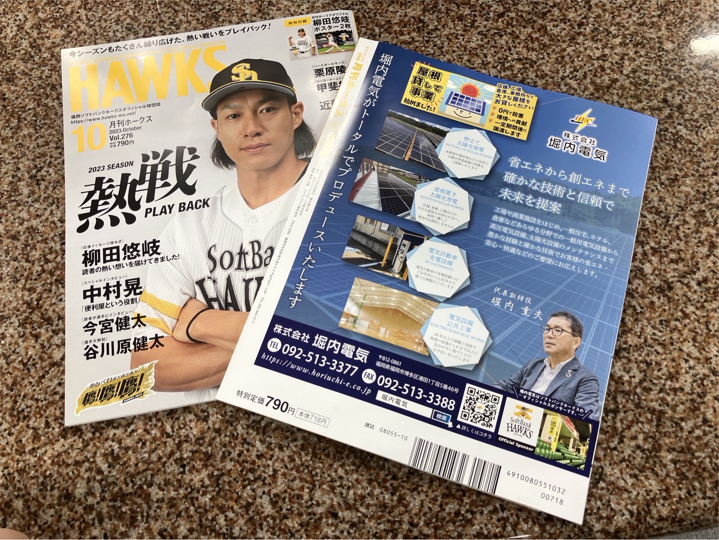 月刊HAWKS 10月号の裏面に弊社の広告を掲載させて頂いております。