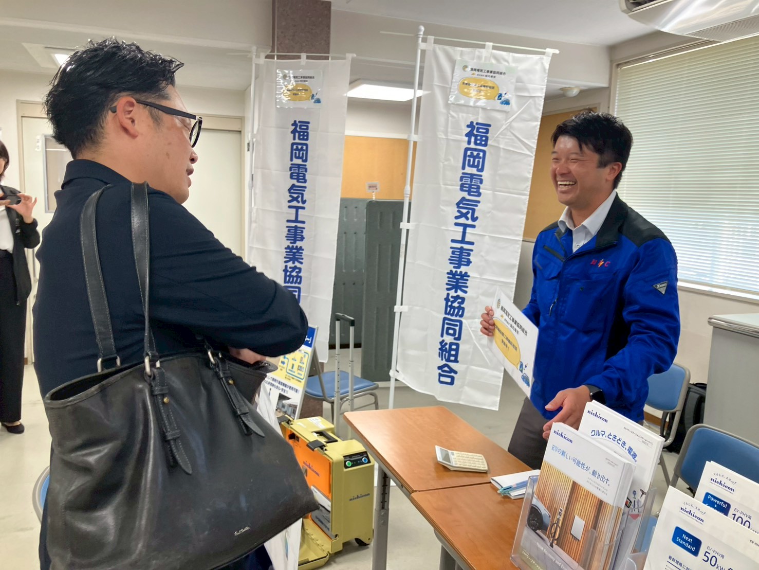 屋内では、EV充電設備等の展示や相談会を開催! 堀内電気も福岡電気工事業協同組合と一緒に 出展させていただき、 EV充電設備の設置工事の無料相談会を開催★