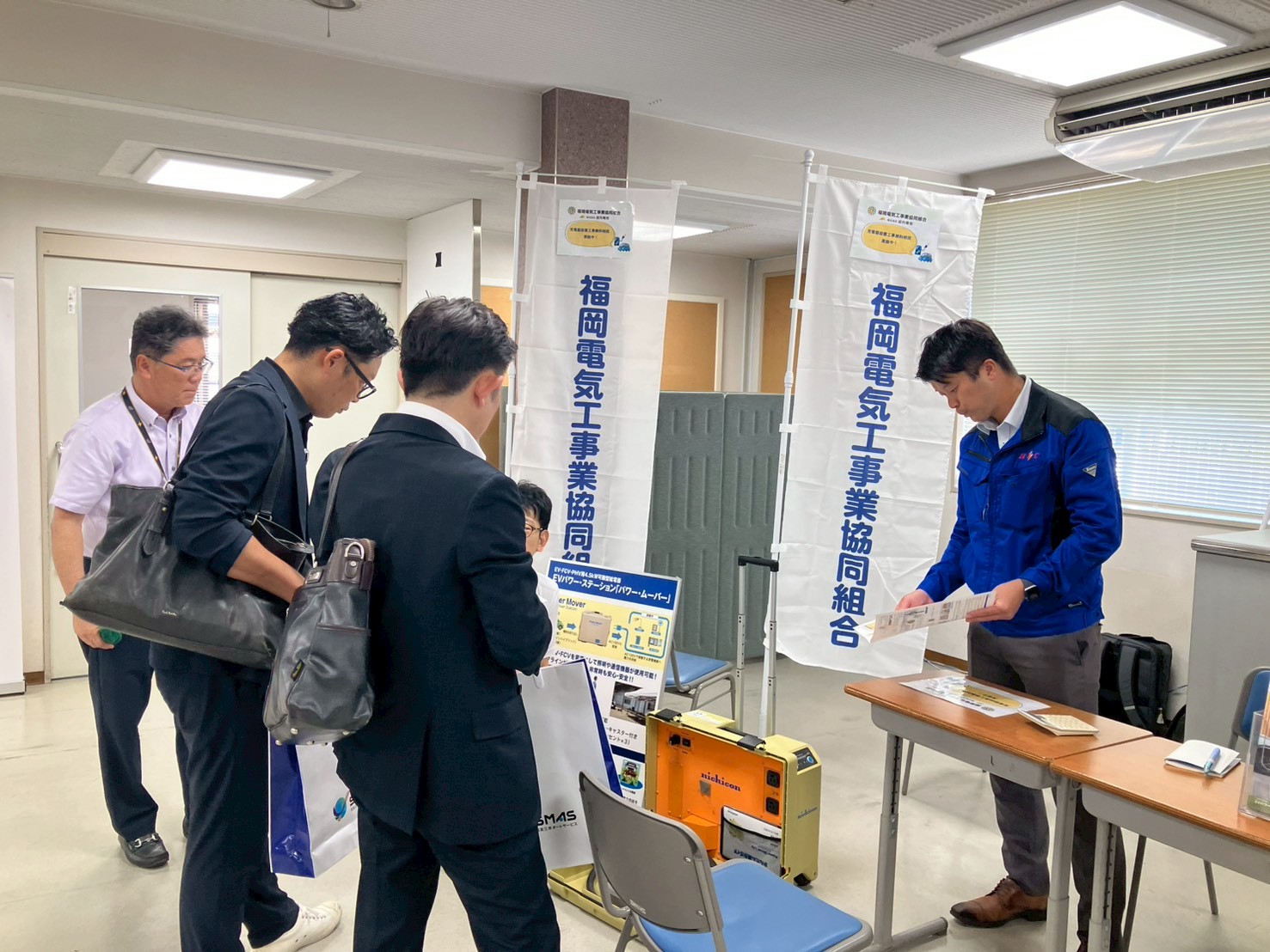 屋内では、EV充電設備等の展示や相談会を開催! 堀内電気も福岡電気工事業協同組合と一緒に 出展させていただき、 EV充電設備の設置工事の無料相談会を開催★